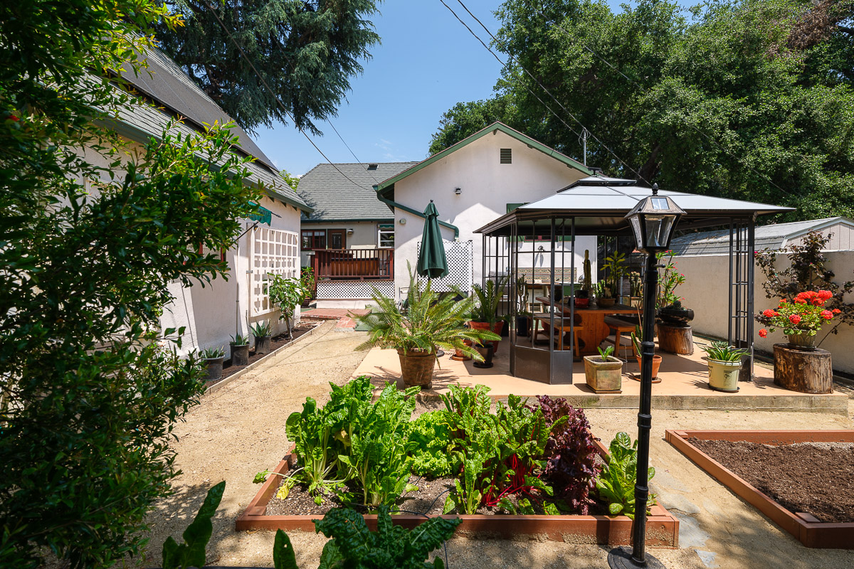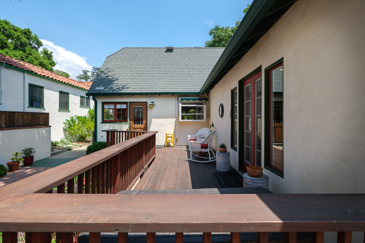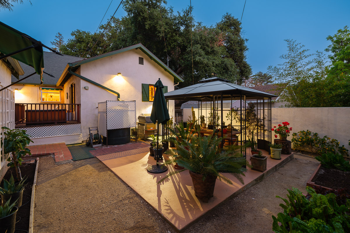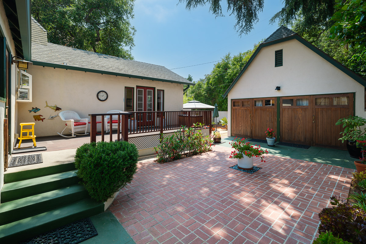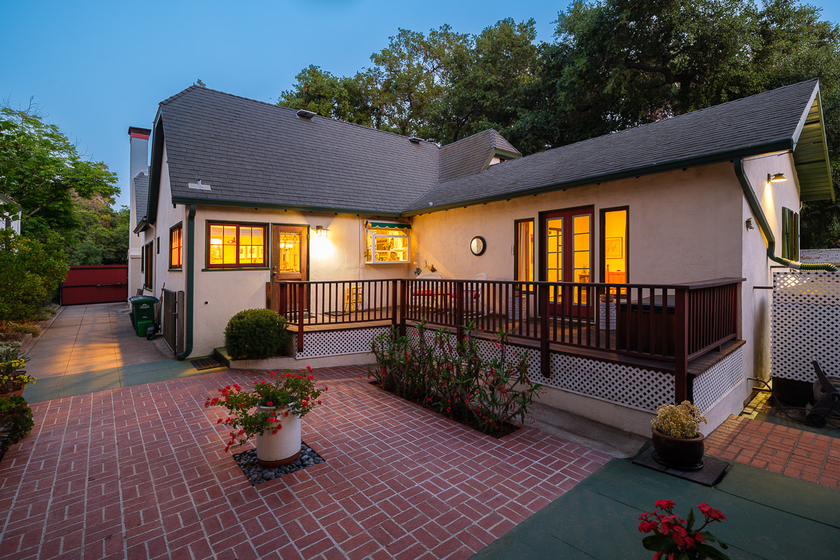The shade-dappled, fenced yard offers multiple areas for relaxing or entertaining friends and family. There is a raised deck, a central patio, a serene trickling fountain plus an outdoor potting space with a composting bin as well as a tile framed sink. The outside is welcomed in with French doors that step out so as to enjoy every inch of the wonderful backyard. Beautiful curb appeal abounds in this very desirable location, that would be a true pleasure to call home for years to come. Don’t miss this gorgeous property!