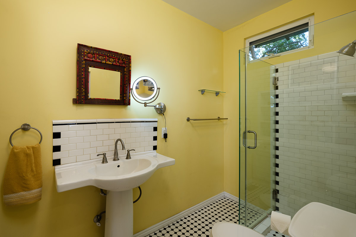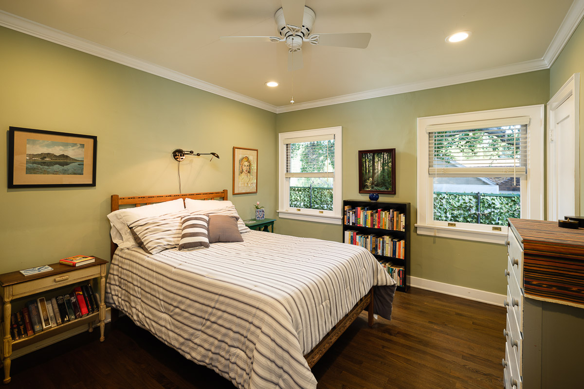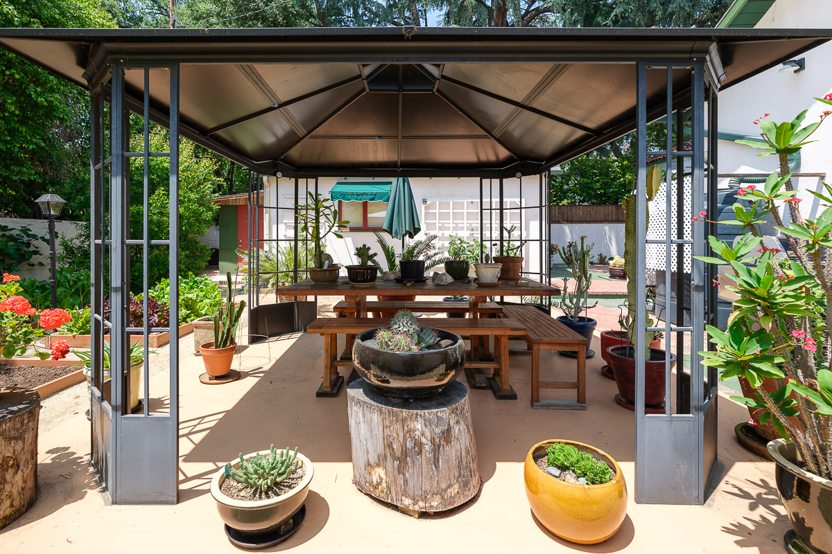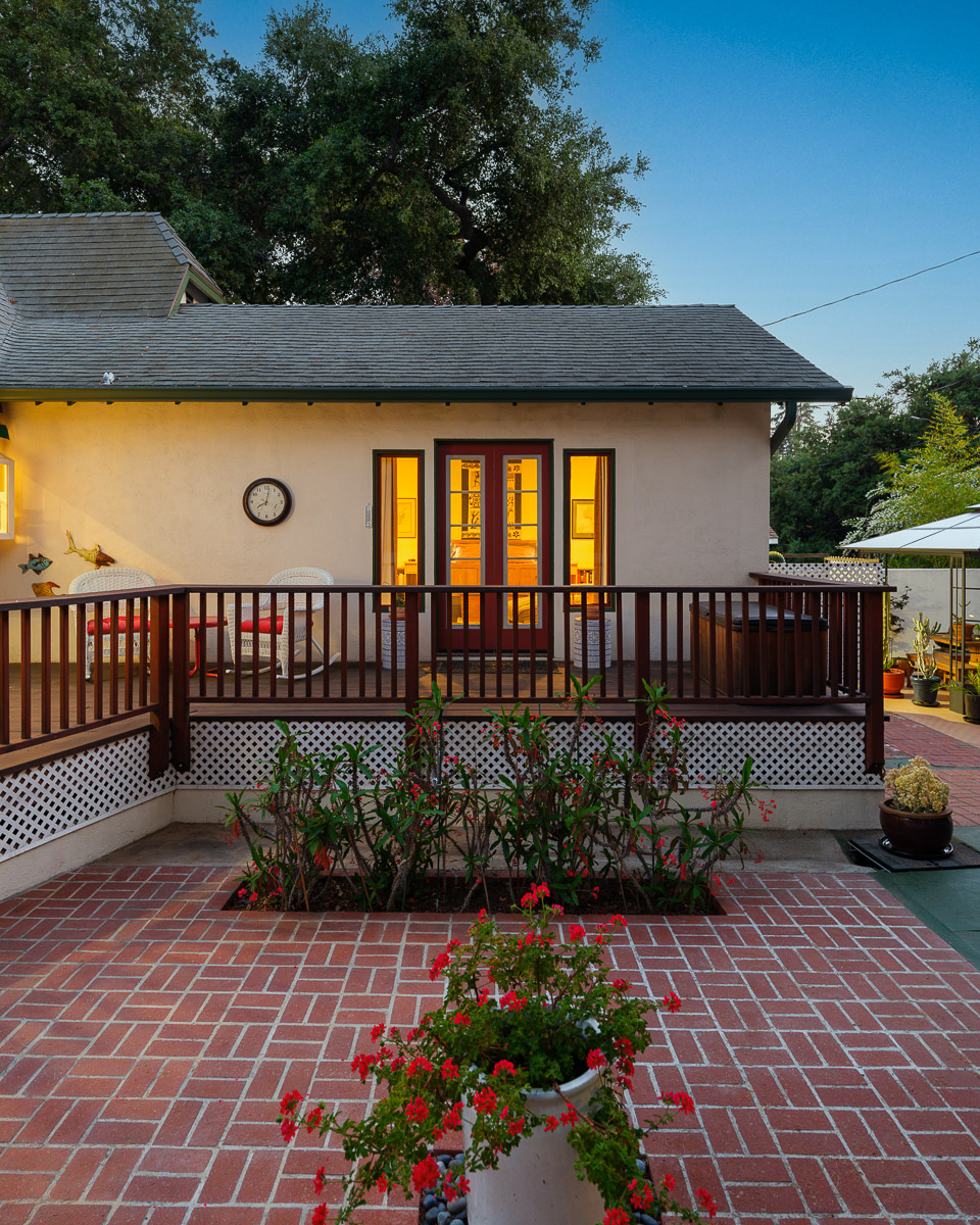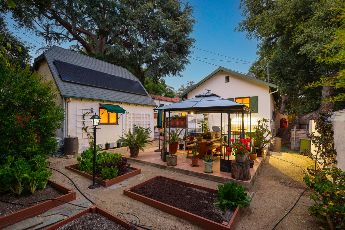 The shade-dappled, fenced yard offers multiple areas for relaxing or entertaining friends and family. There is a raised deck, a central patio, a serene trickling fountain plus an outdoor potting space with a composting bin as well as a tile framed sink. The outside is welcomed in with French doors that step out so as to enjoy every inch of the wonderful backyard. Beautiful curb appeal abounds in this very desirable location, that would be a true pleasure to call home for years to come. Don’t miss this gorgeous property!
