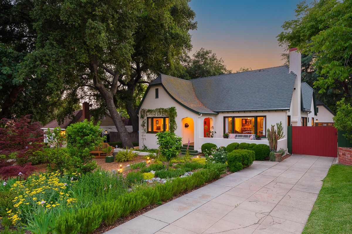 Welcome to this idyllic 1923 storybook country English residence with four bedrooms, three baths and a sitting room all in one of Altadena’s most sought-after neighborhoods. Located at the base of our majestic foothills, the house is filled with character details and charm throughout. Some of the highlights include an inviting living room with a barrel ceiling as well as a wide front window that looks out at the welcoming front porch and picturesque tree-lined street. There is also an elegant formal dining room, a beautifully remodeled kitchen that is an entertainer’s dream, done with high-end stainless appliances including Viking and Wolf, as well as a quaint breakfast nook, a raised ceiling and an expansive center island. Additional features are rich wood floors, crown molding, custom built-ins, an energy efficient solar system, a stately decorative fireplace with Batchelder style tiles, period hardware and lovely architectural touches. Finally, the garage has been converted to an enchanting office and music room. It is a joy to behold but could easily be reverted back to a parking area, if desired. It is all truly picture perfect!